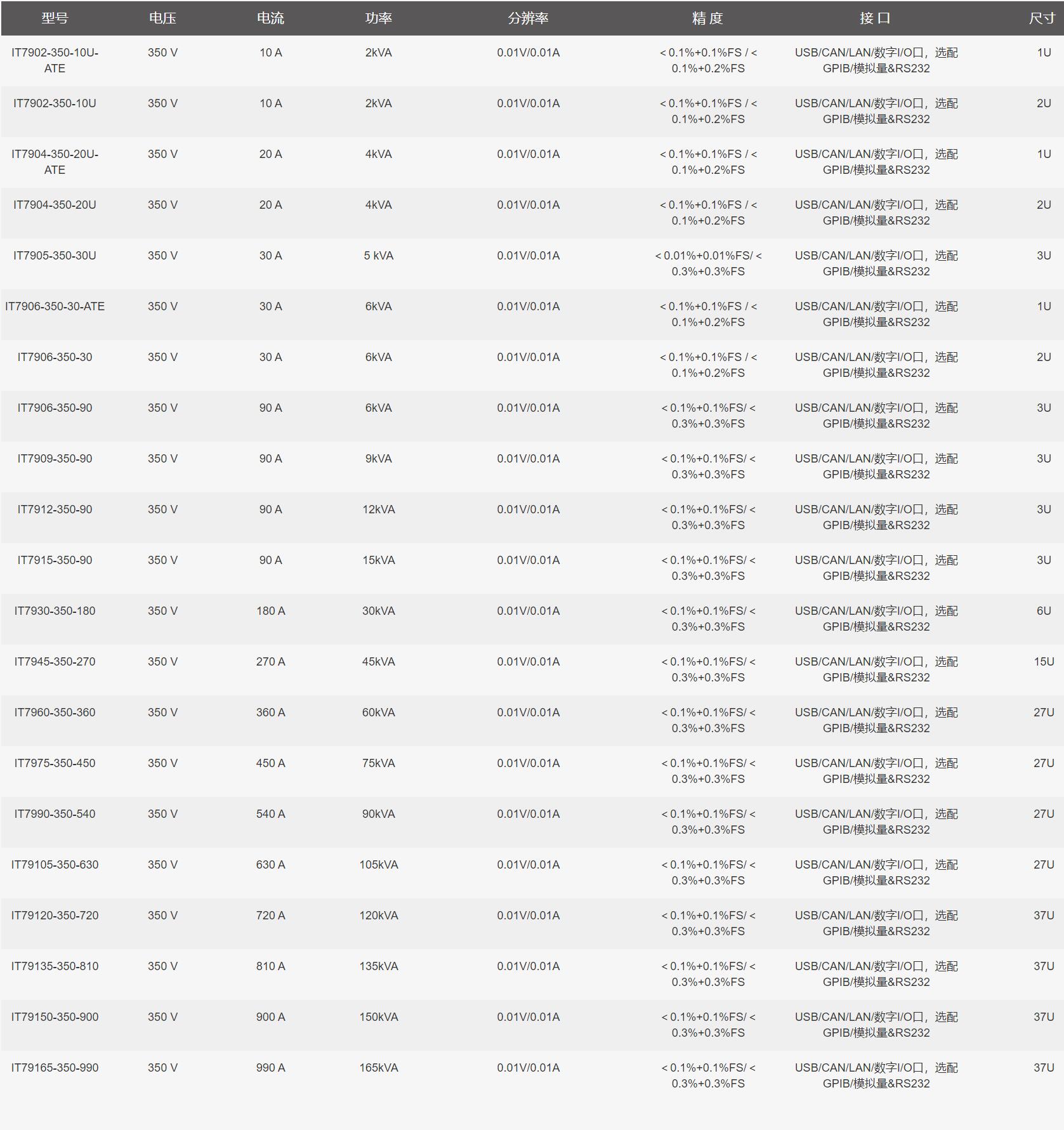 IT7900系列回馈式电网模拟器采用高功率密度设计,在3U的体积内功率可达15kVA,电压可达350V L-N。通过主从并机,可轻松扩展功率至960kVA。