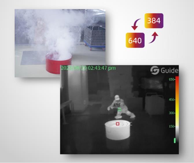 提供640x480/384x288两种画质选择,无需对焦即可快速生成清晰细腻、细节丰富的热像图,帮助用户在浓烟滚滚的环境中轻松导航。