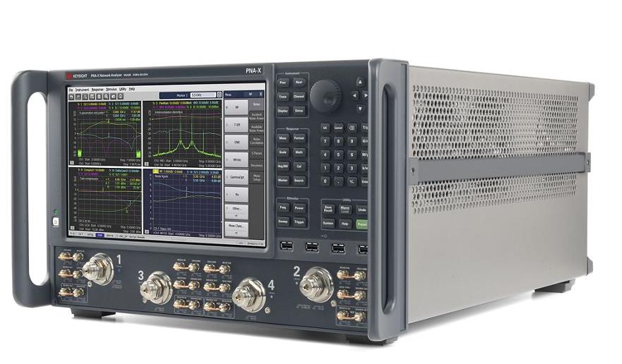 PNA-X 系列微波网络分析仪是是德科技在射频(RF)网络分析领域内长达 40 多年的技术优势和产品创新精神的代表作。 这款 PNA-X 分析仪不仅仅是一款矢量网络分析仪,在测量放大器、混频器和变频器等有源器件方面,它们也是功能全面和灵活的微波测试引擎。 它的硬件包括两个内部信号源、一个信号合路器、S 参数和噪声接收机、脉冲调制器和发生器以及一组开关和射频接入点。 这些硬件为进行各种线性和非线性测量提供了功能强大的核心,只需通过一组连接与被测器件相连,即可执行所有这些测量。