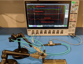 利用MSO68B示波器仪器观测阶跃脉冲源输入点上的传输线信号,仪器上的波形以时间顺序显示入射和反射传播信号总和。只要知道反射波的幅度和测量反射波的幅度,就可以计算阻抗的变化,同时只要测量由反射波到反射波再到达发射点的时间差就可以计算阻抗变化的位置。